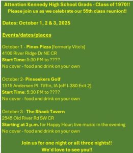 Questions? Email jfk75cedarrapids@gmail.com